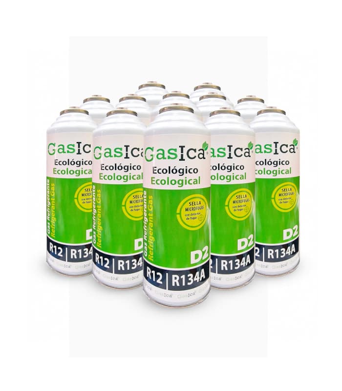 12 Botellas Gas Ecológico Gasica D2 226g Sustituto R12, R134A Freeze Orgánico