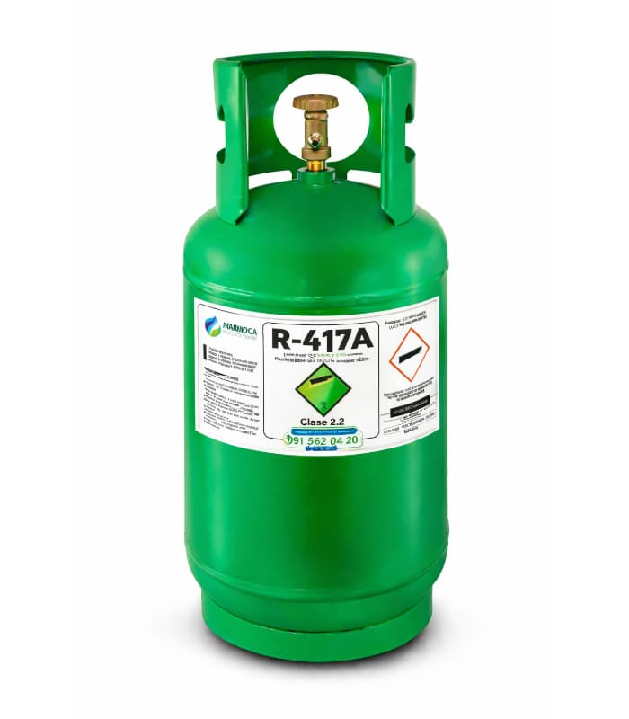 Gas refrigerante R417A (HFC) para retrofit de sistemas R22 sin cambio de aceite. Compatible con aceites minerales y alquilbenceno. GWP 2.346, ideal para aire acondicionado y refrigeración existente. Comprar en Gases Marmoca SL con envío 24h.