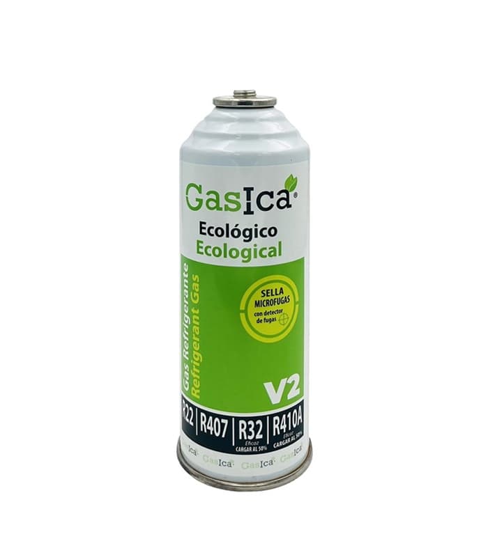 La carga de gas refrigerante Gasica V2 en envase de 226 gramos, destaca como un sustituto de los gases R22, R407, R32 y R410A comúnmente utilizado en recargas de equipos pequeñas y/o puntuales.